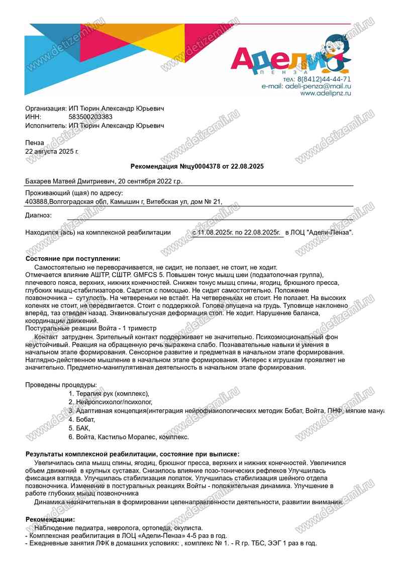 для реабилитации Матвея в ЛОЦ «Адели-Пенза». Муж работает на железной дороге,