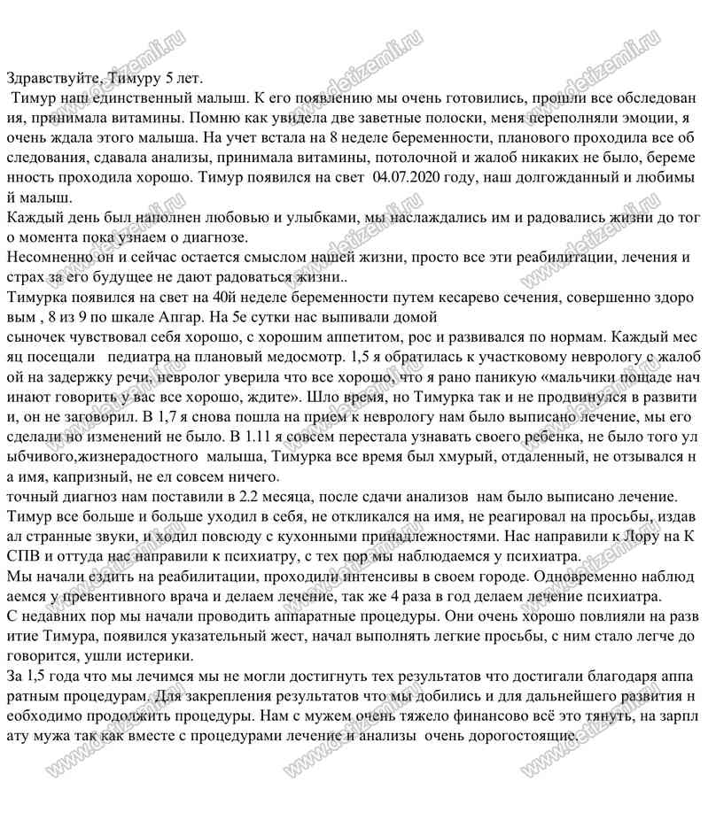 Благотворительный фонд помощи детям "Дети Земли" открывает сбор пожертвований на оплату лечения Шихмагомедова Тимура. У ребенка ДЦП. На лечение требуется 180.000 рублей. Помогите больному ребенку!
