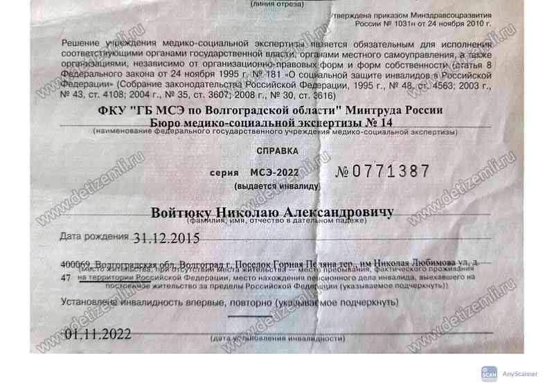 Благотворительный фонд помощи детям "Дети Земли" открывает сбор пожертвований на оплату лечения больного ребенка из Волгограда. Необходимо собрать 183.000 рублей. Окажите помощь Коле Войтюк!